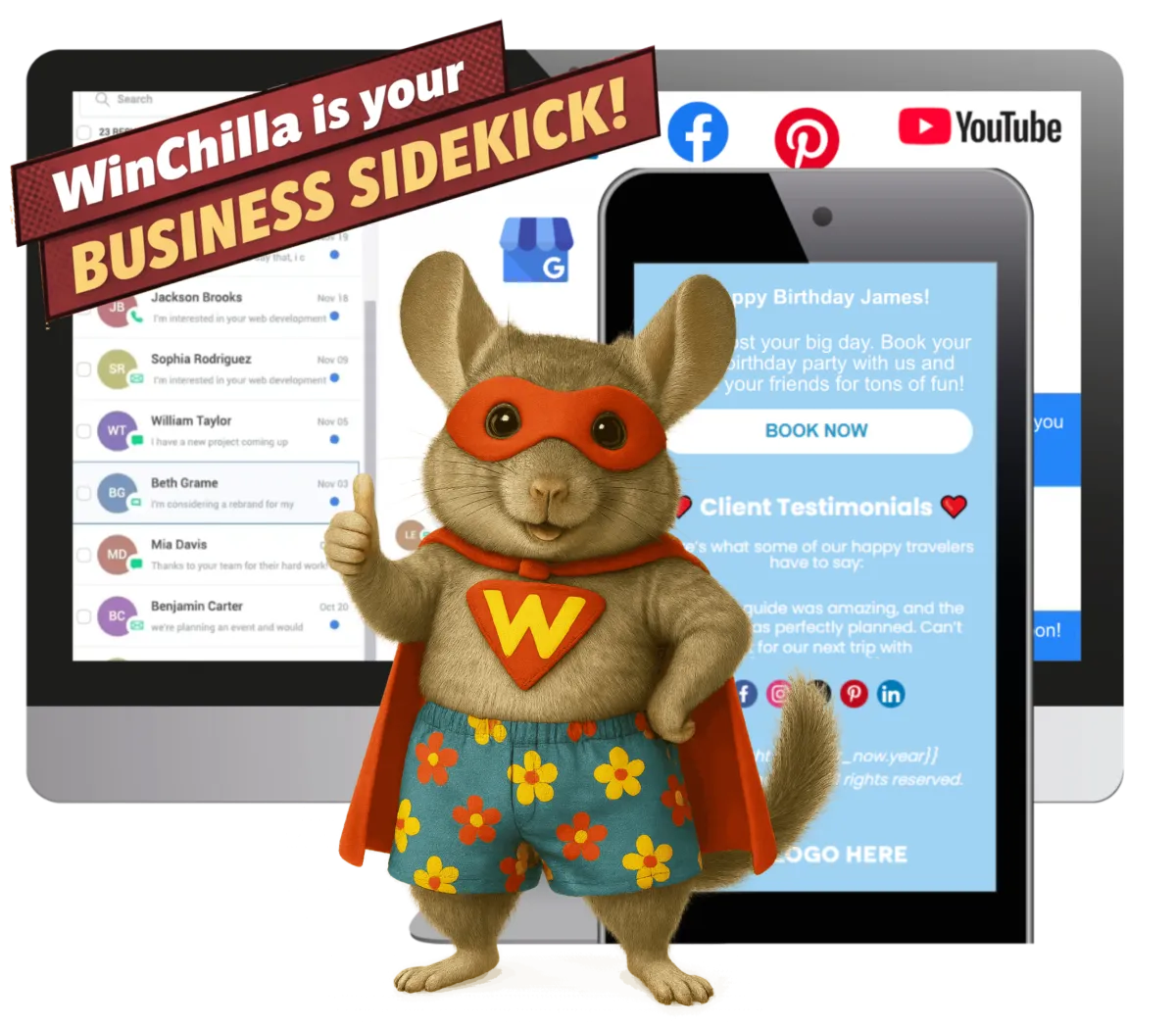 Win back your time. Automate tasks, sync team calendars, scheduling your marketing and social media posts, reply to conversations in one place. WinChilla assists with your day-to-day to-do list.